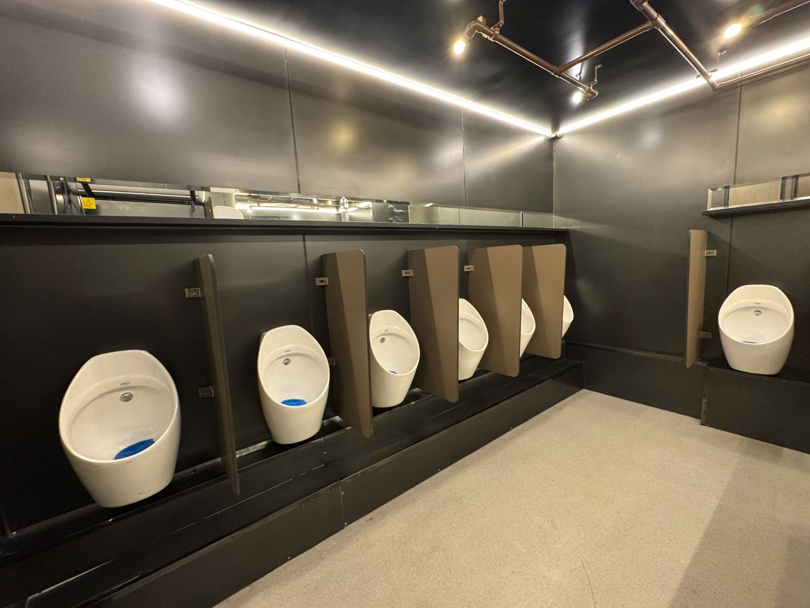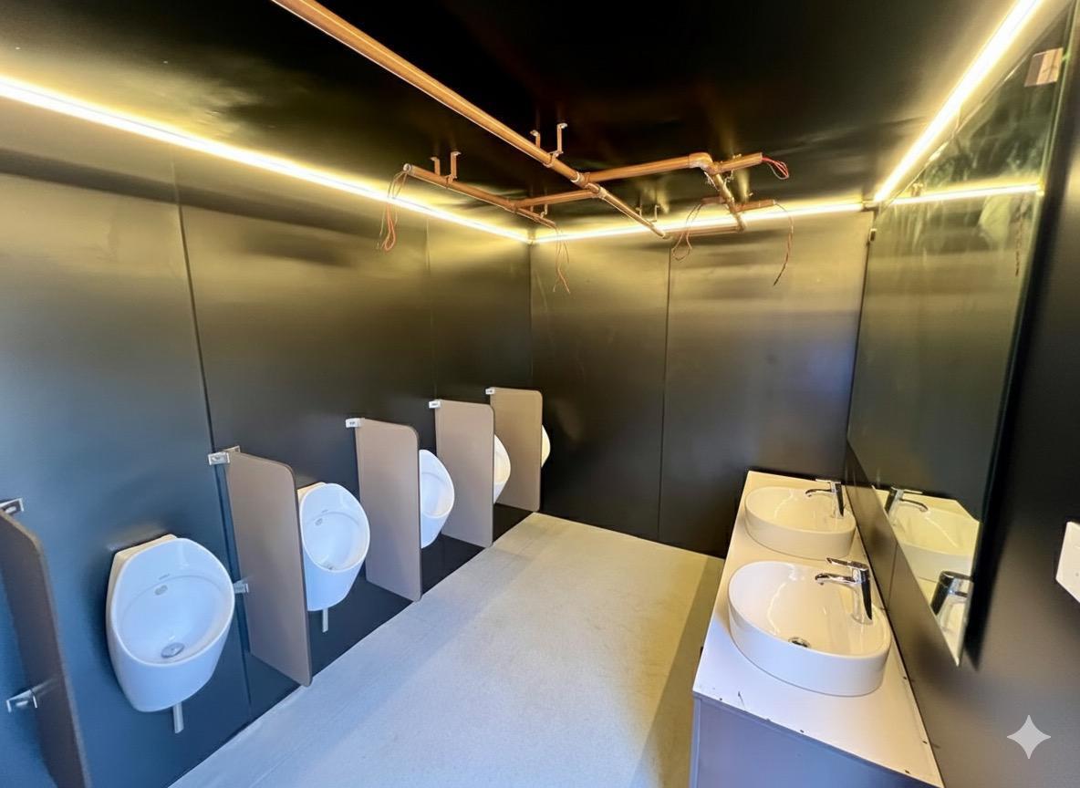 Despite being outdoor portable units, our fleet toilets offer a luxurious experience with ample space and a durable build. The user experience is enhanced with a non-splash urinal and a sink, providing enough room for a single user or a parent accommodating an infant.